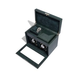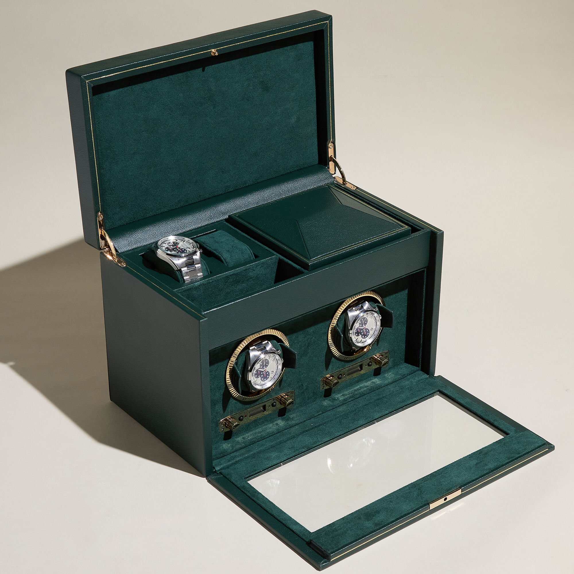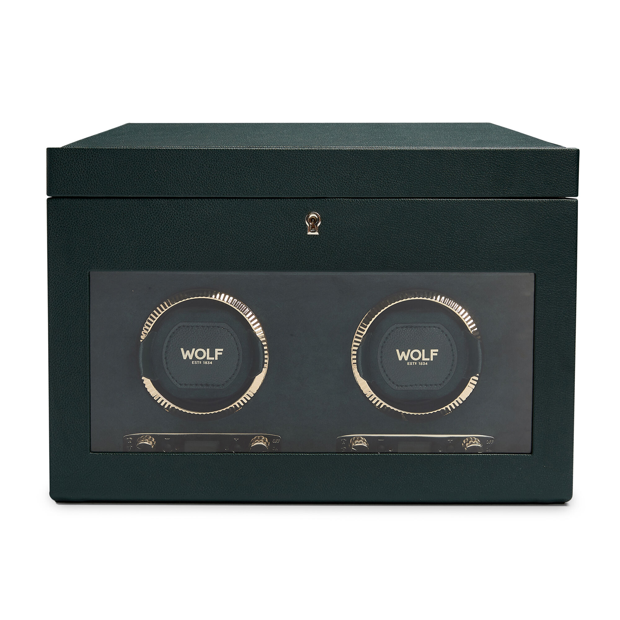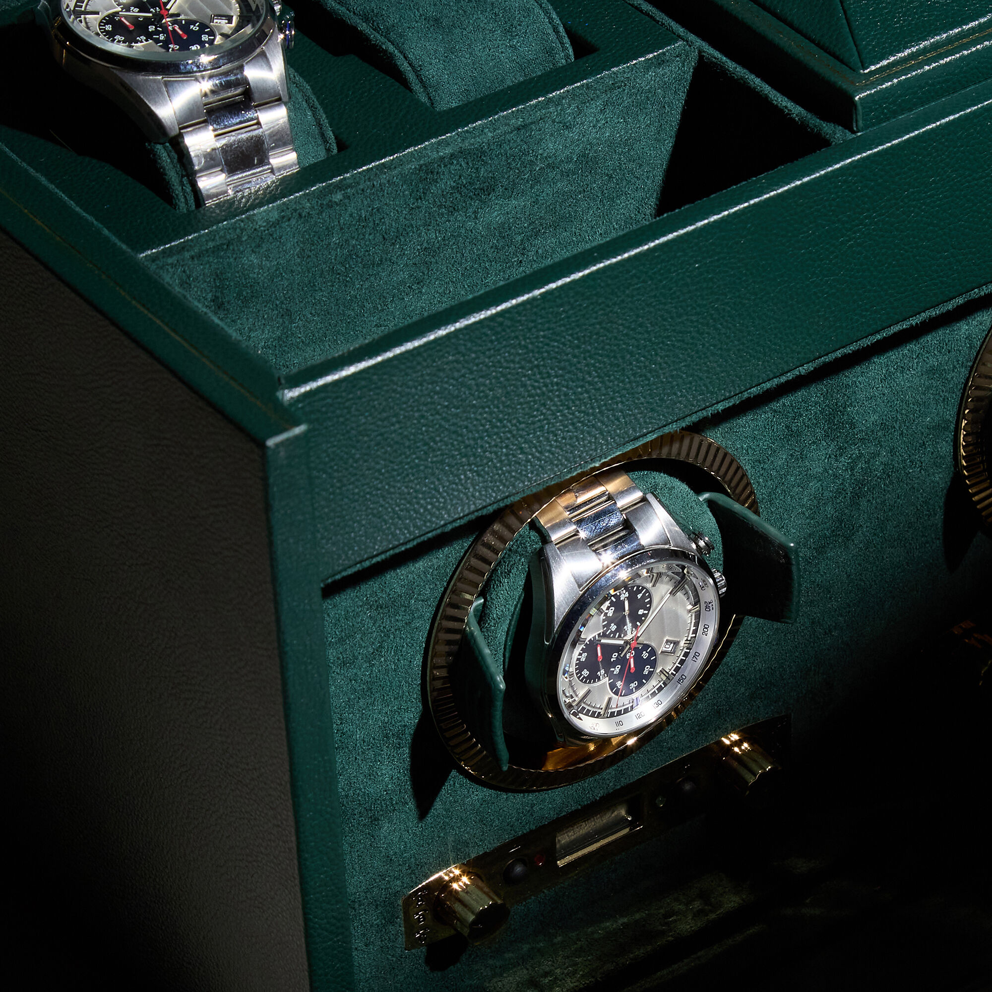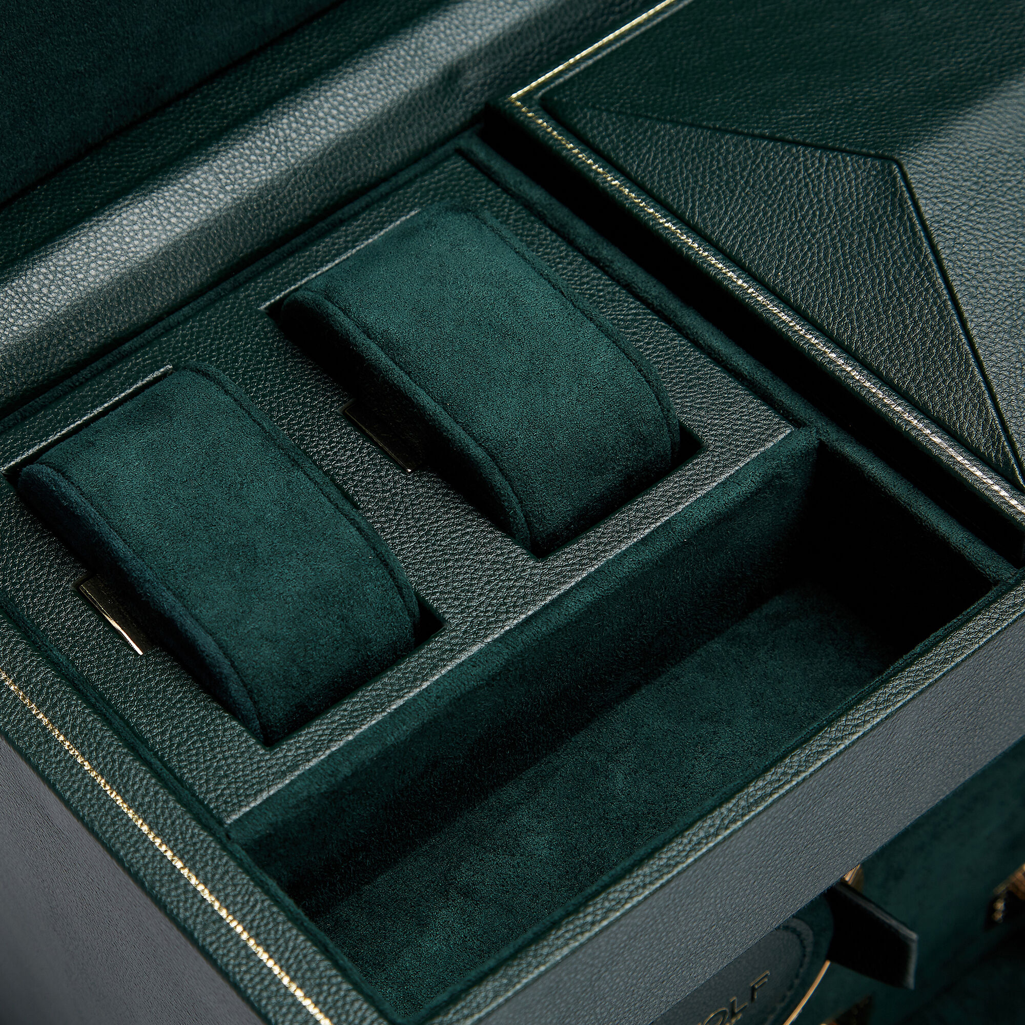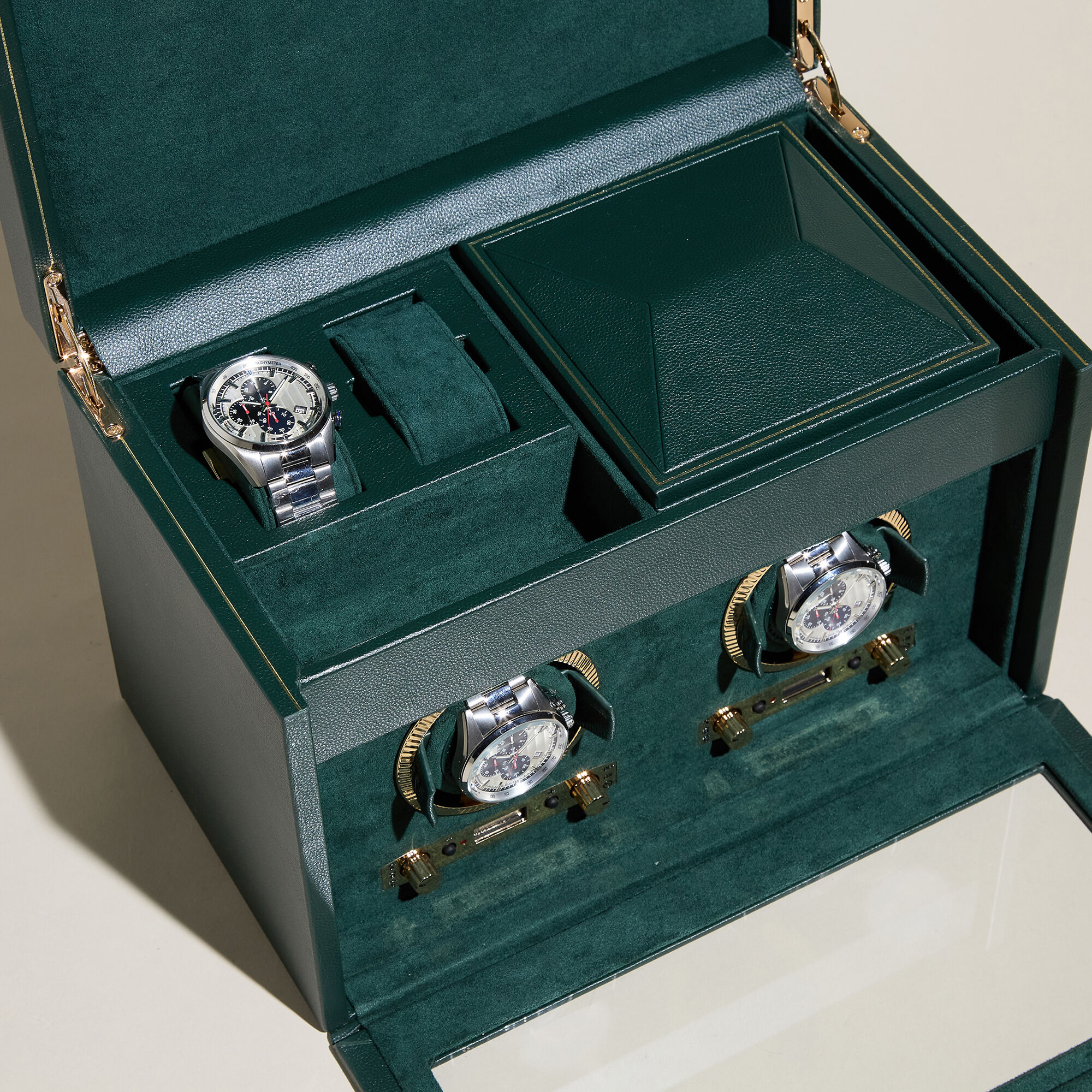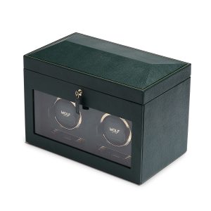 WOLF “British Racing” Green Vegan Leather Two-Module Watch Winder