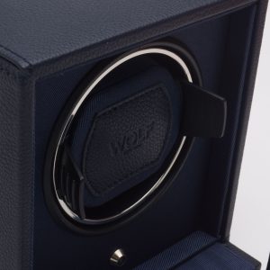 WOLF “Cub Winder” Navy Single Watch Winder with Cover