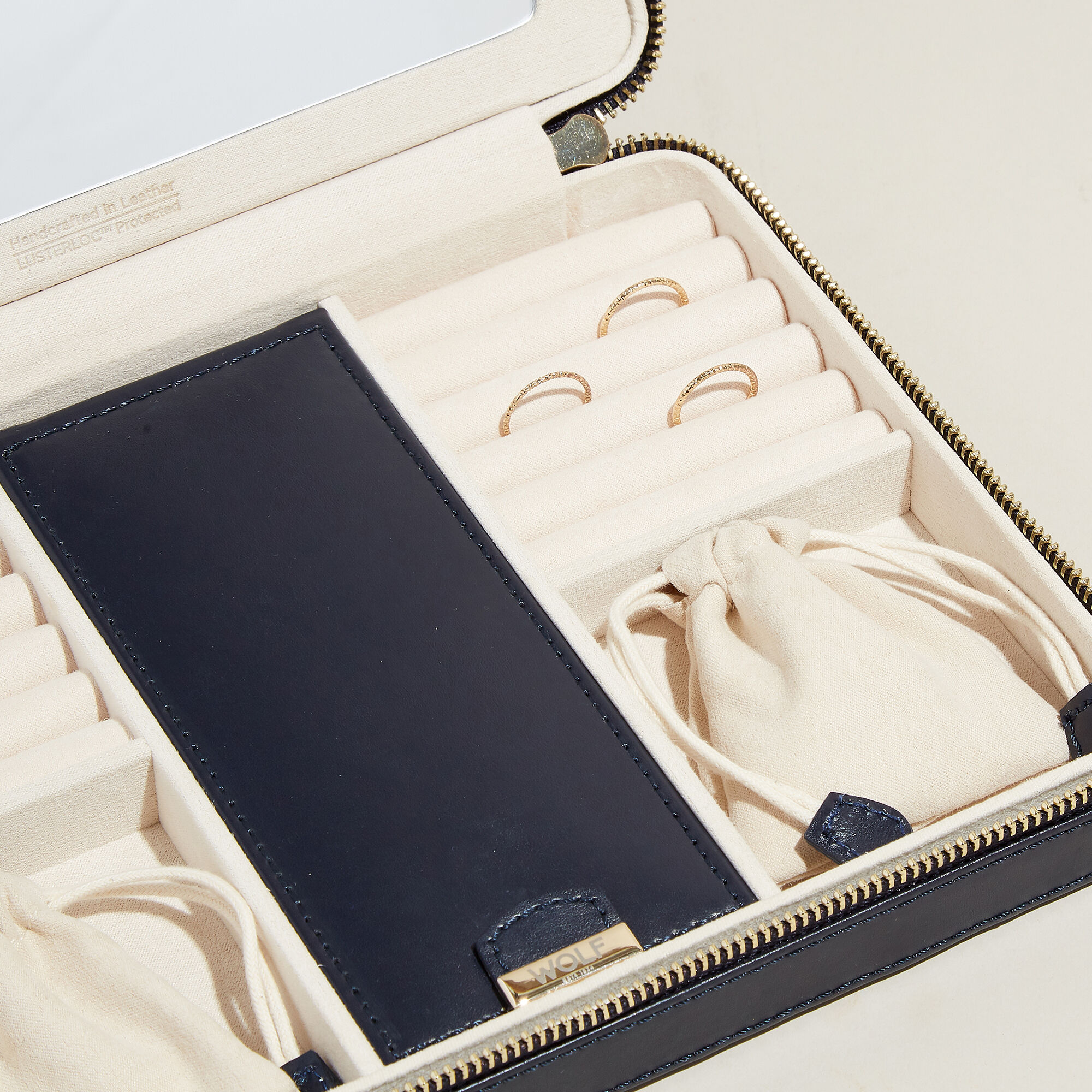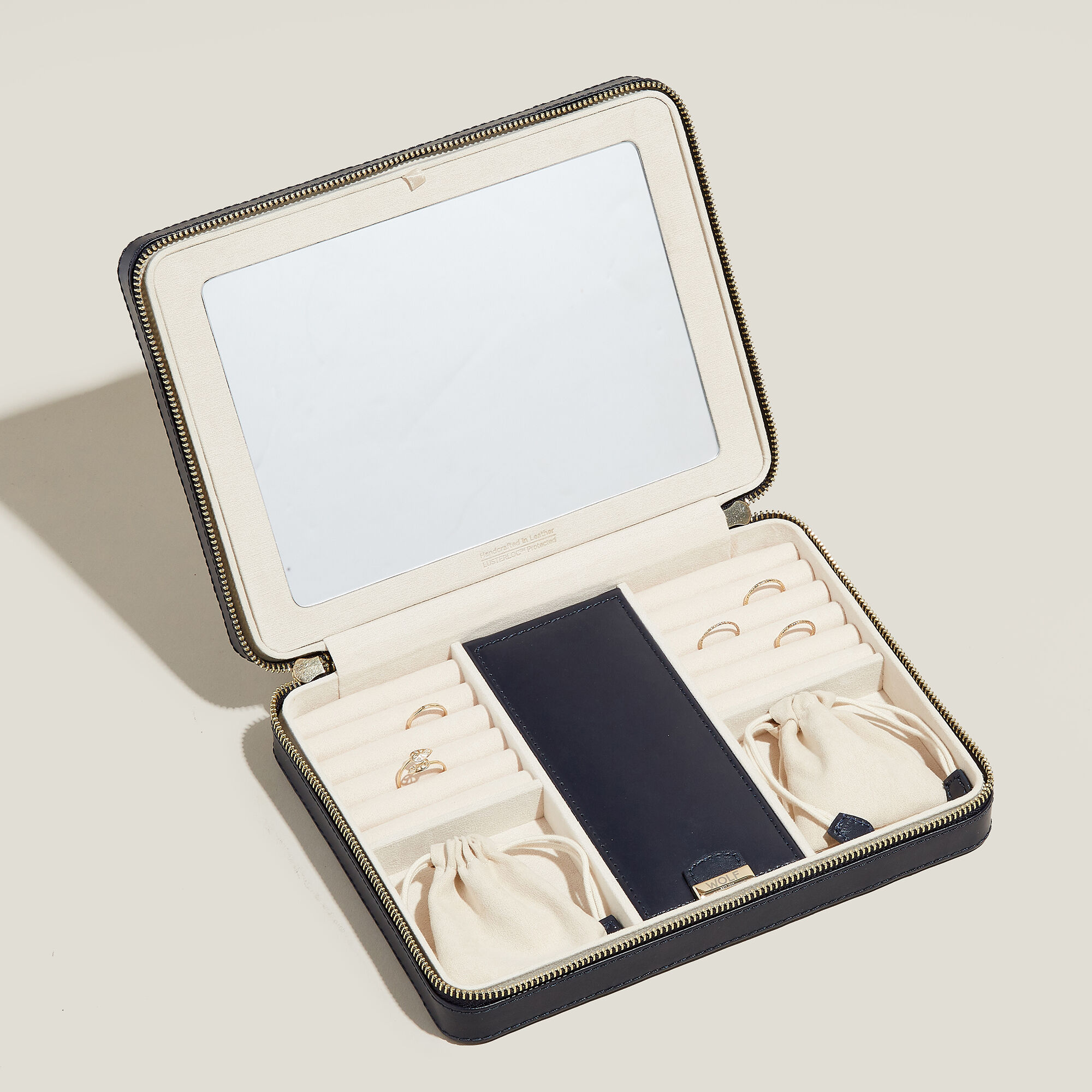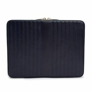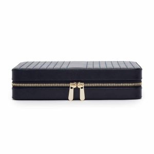 WOLF “Maria” Navy Leather Large Jewelry Zip Case