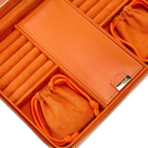 WOLF “Maria” Orange Leather Large Jewelry Zip Case