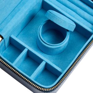WOLF “Sophia” Indigo Leather Jewelry Zip Case