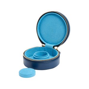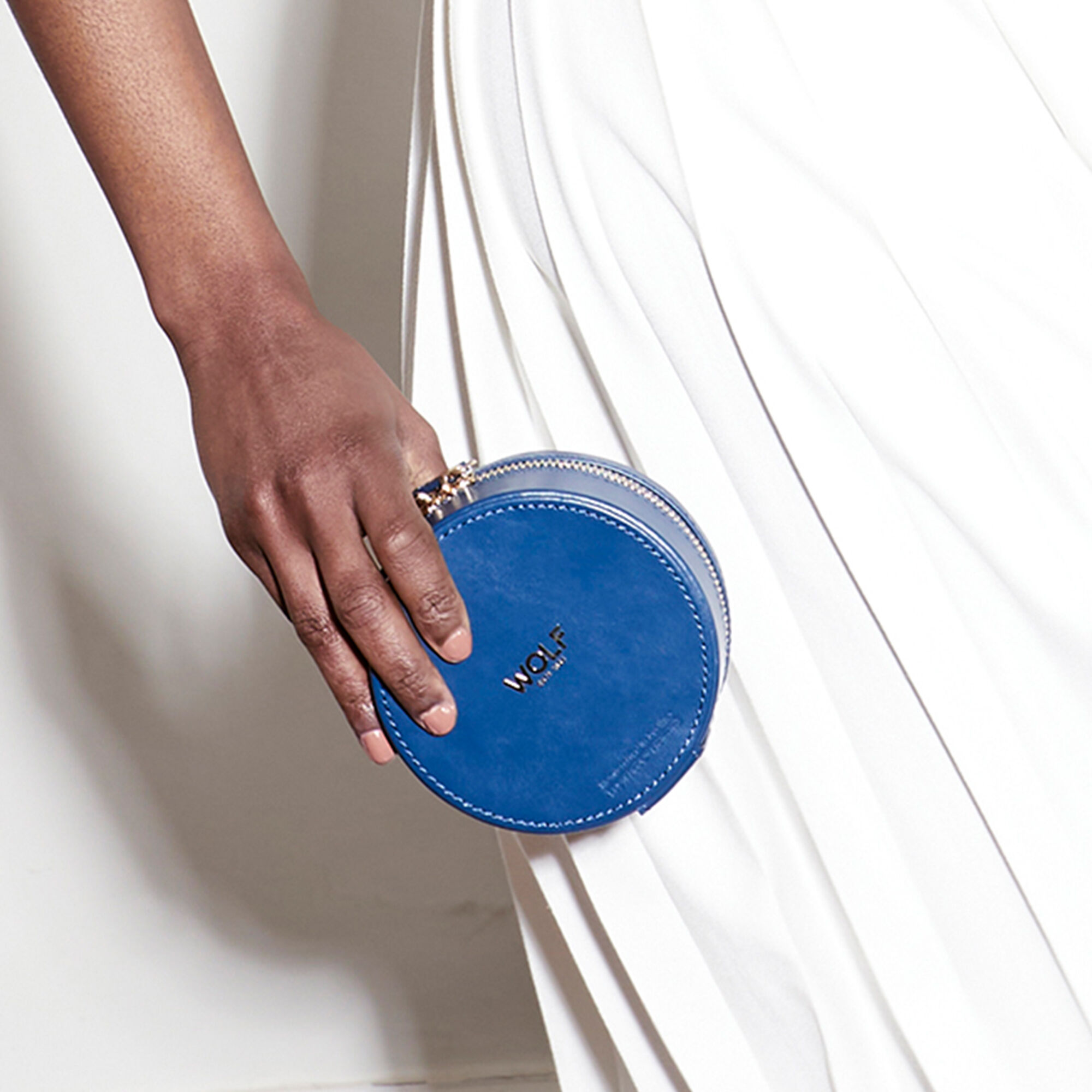 WOLF “Sophia” Indigo Leather Mini Jewelry Zip Case