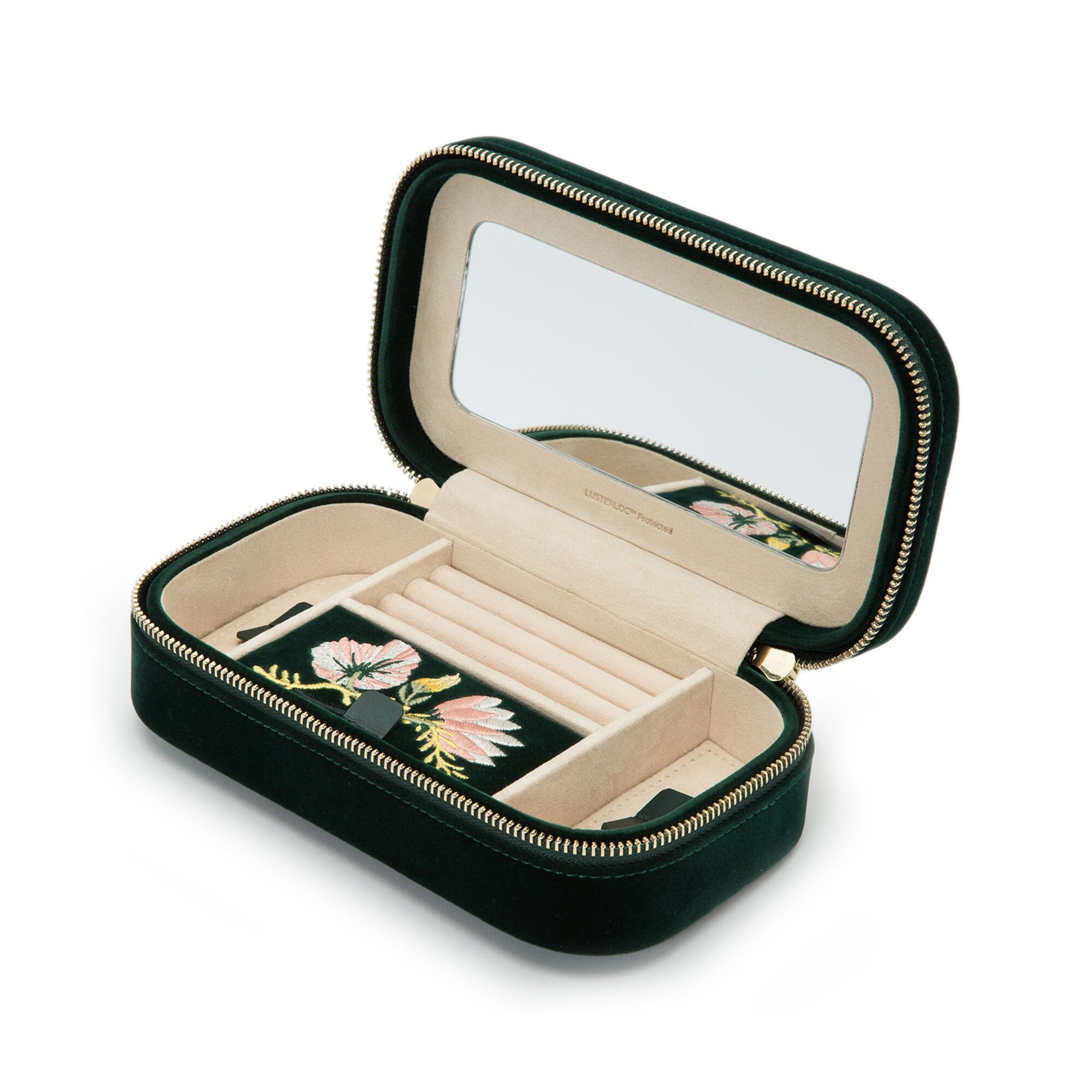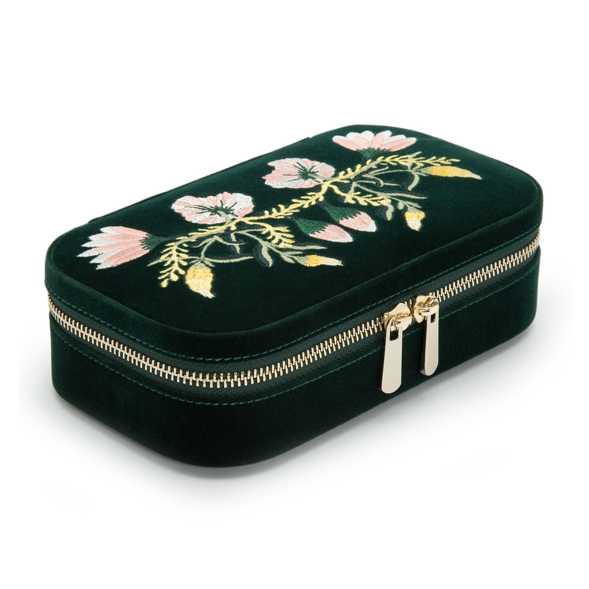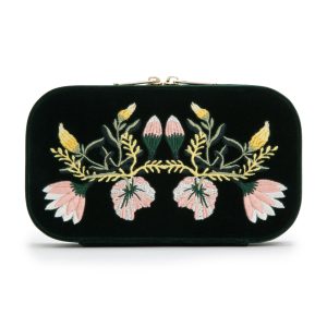 WOLF “Zoe” Forest Green Velvet Floral Jewelry Travel Case