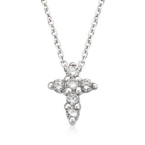 Roberto Coin .11 ct. t.w. Diamond Cross Necklace in 18kt White Gold. 16″