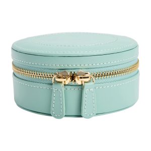 WOLF “Zoe” Forest Green Velvet Floral Round Jewelry Travel Case